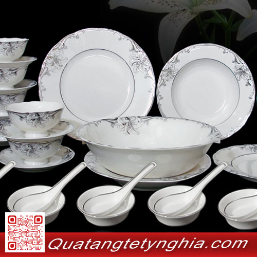 Bảng chi tiết Bộ bàn ăn 30sp Đài Các trang trí bạch kim 30266 gốm sứ Minh Long bao gồm: