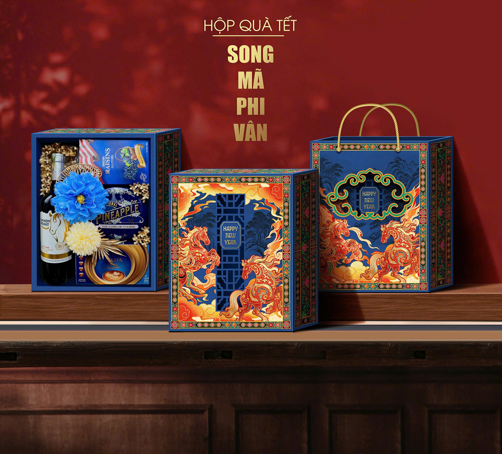 HỘP ĐỰNG QUÀ TẾT SONG MÃ PHI VÂN HỘP XẾP 29*37*10CM