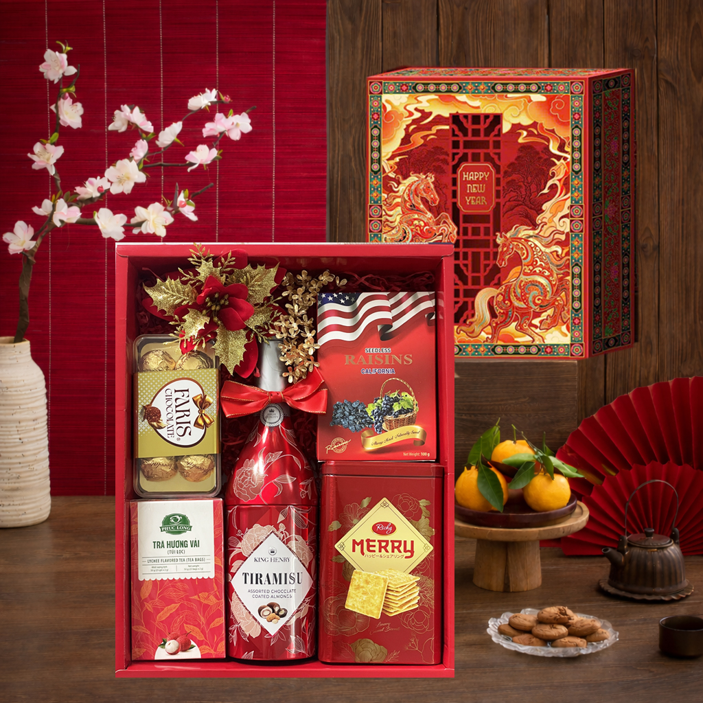 HỘP QUÀ TẾT SONG MÃ PHI VÂN 29*37*10 cm + TÚI GIẤY