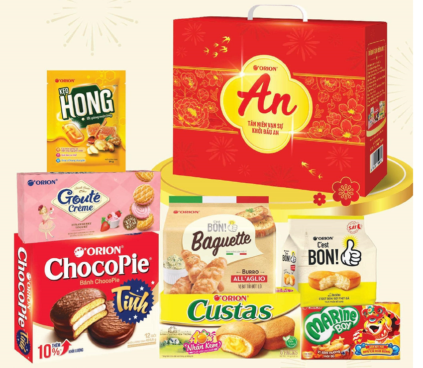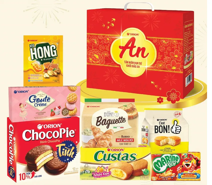 Bộ quà tặng Tết Orion Bình An 2 là một lựa chọn phù hợp cho những gia đình sum vầy, đoàn tụ với các sản phẩm cụ thể là:
