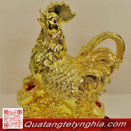 Tượng gà phong thủy mạ vàng 24K với chi tiết được làm tỉ mỉ, đẹp mắt cùng lớp vàng 24k óng ả, đứng trên đống vàng và dang mình cất tiếng gáy sẽ là quà tết vừa mang ý nghĩa phong thủy, vừa rất độc đáo nữa đó.